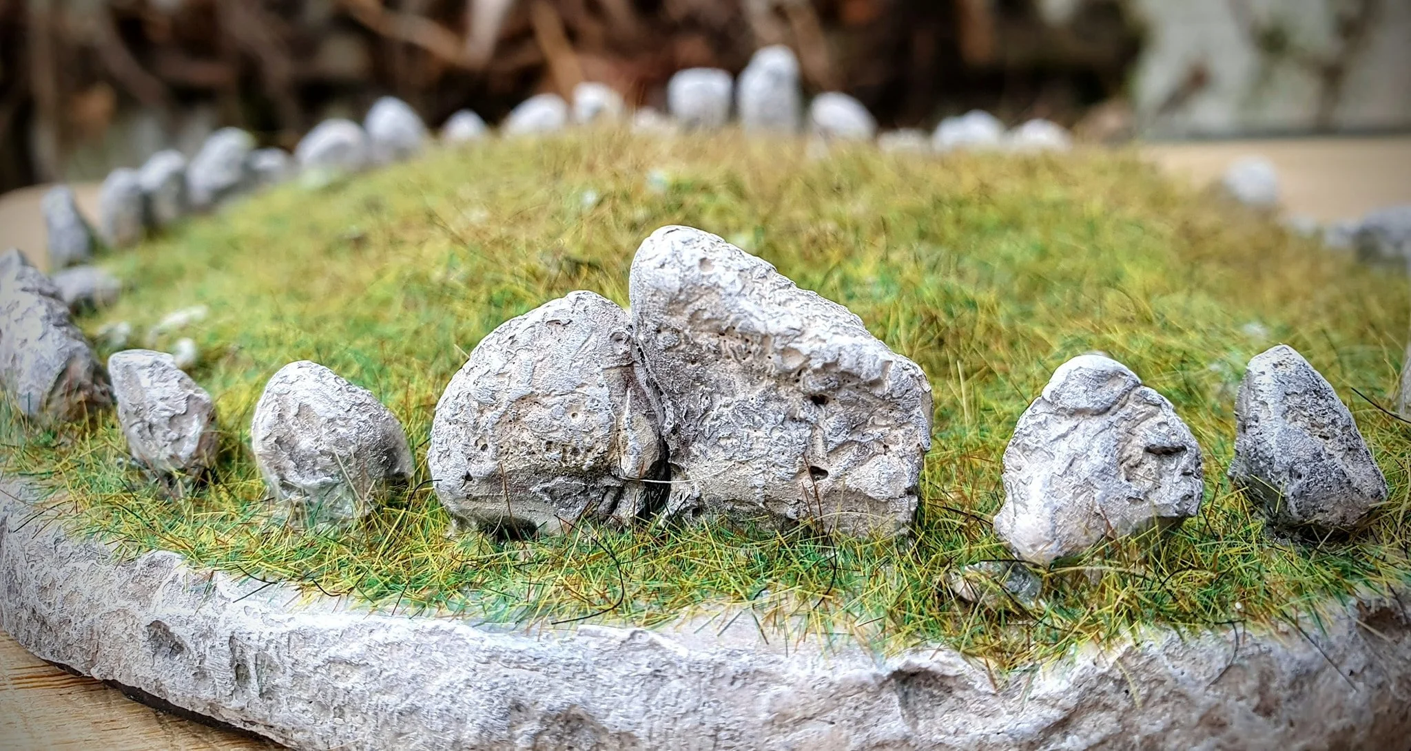 Each piece has its own specific colour palette and texturing requirements. In the pursuit of creating hyper-realistic stone and grass work, this can often be a laborious task before a satisfying finish is achieved. The highly authentic stone finish is created by applying specific wet-wash and dry-brush techniques honed over time, there are no shortcuts in this game! Many layers must be dry before overlaying, while others must be wet, to provide an end result that in your hand that feels, looks and weighs like a genuine stone artefact, even under close scrutiny. No brush strokes! I take great pride in producing this unique aesthetic, every single piece that I create receives the same level of attention to detail as the first. I love what I do and I hope it shows in the work I produce.